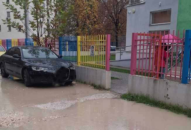 Се молат од Општина по една педалинка да остават пред влезот, за да можеме да си ги земеме децата од градинка. Вака реагираат родители кои се принудени секојдневно да ги носат децата во градинката „Црвенката“ во Стар Аеродром, газејќи низ кал и езерца со вода во деновите кога врне, затоа што до објектот нема уреден приод.
