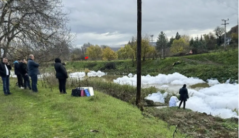 Утрово жителите на селото Таор во општина Зелениково беа сведоци на загрижувачка глетка – одводниот канал што се влива во реката Вардар осамна покриен со густа, необична пена во обем значително поголем од вообичаеното.