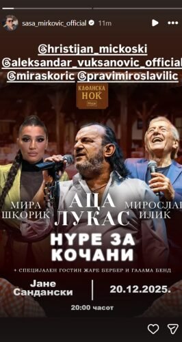Сопственикот и директор на „Хајп продакшн“, Саша Мирковиќ, одлучи да го покани премиерот на Северна Македонија, Христијан Мицкоски на хуманиотарниот концерт во Кочани, настан што ќе се одржи на 20 декември 2025 година во Скопје.