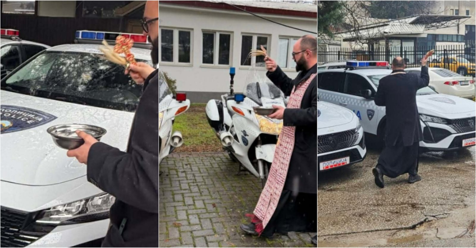 Свештеник осветува полициски возила во МВР – реакции од сите страни
