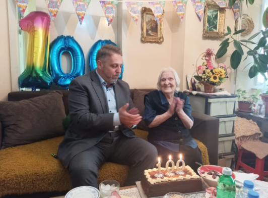 По тој повод градоначалникот на општина Карпош Сотир Лукровски и претседателот на Советот, Христо Саракинов ја посетија баба Славка, која го прослави својот 100-ти роденден.